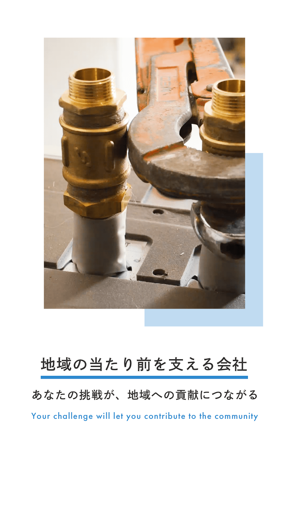 私たちの仕事は、道路のガス管の異常チェックや道路・一般家庭のガス管の修繕がメイン。ガスが漏れている、お湯が出ないといった地域のお困りごとを迅速に解決します。